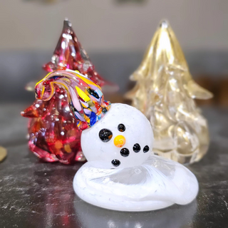 Have you ever wished to bring a piece of Frosty the Snowman into your home? Now's your chance! Join us for an enchanting session where you can design your very own glass snowman or 2 ornaments. Our talented glass artists will bring your creation to life right before your eyes!