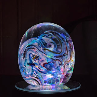 Discover a fresh twist on a classic favorite! In this immersive hot shop class, you’ll create a solid glass globe designed to sit atop an included mirrored LED light base, with your choice of a white or multicolor stand.